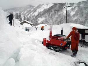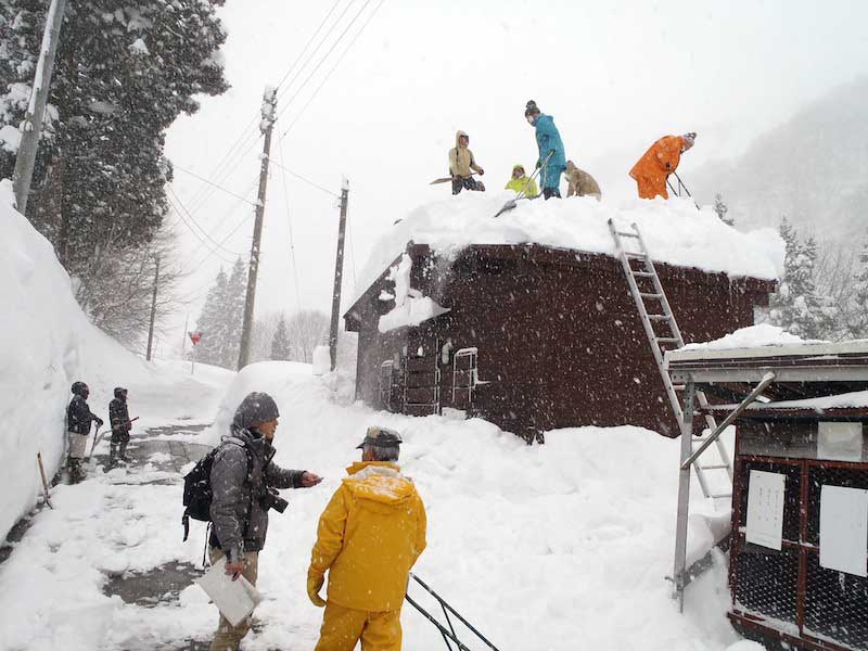 2日前からの大雪警報で、集落にはたっぷりの雪。関東各地や南魚沼市の平野部から集まった13人が、拠点となっている民家を中心に、雪掘りの基礎を学びました。