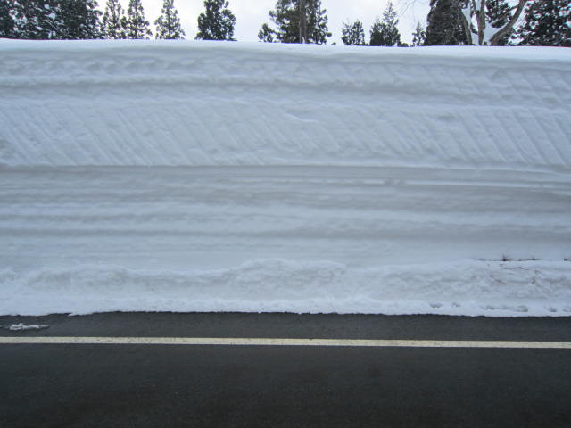横に伸びる縞模様いままで降った雪の回数がわかります。現在の積雪は3m50cmくらいです。