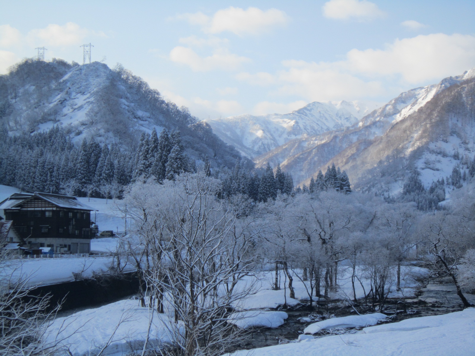 桜の便りがすぐ近くまで届いていますが、清水の里はなごり雪には遅すぎる雪が降りました。一足早い雪見桜?清水の集落を代表する風景です。
