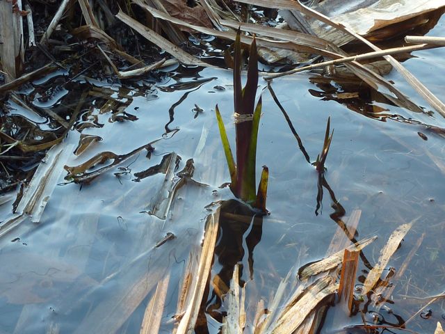 残雪がまだ残るビオトープの生き物ぞくぞくと動き出しています。