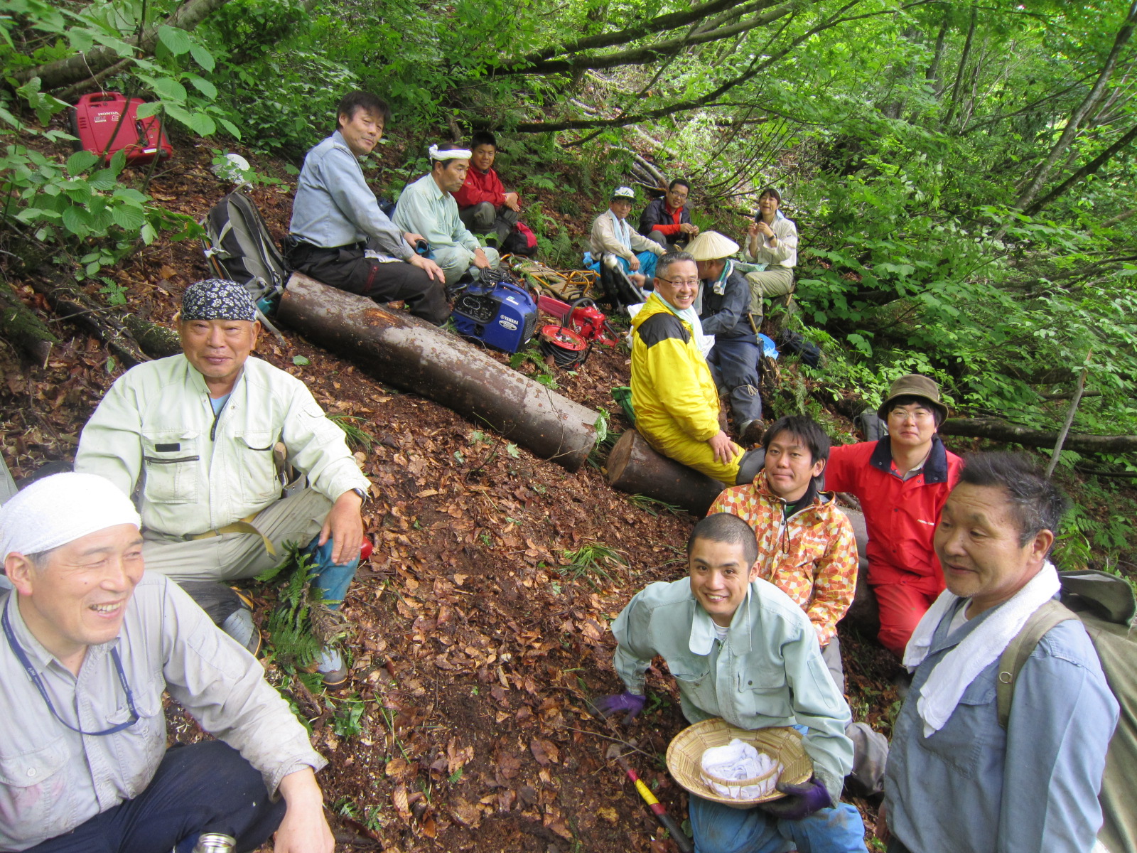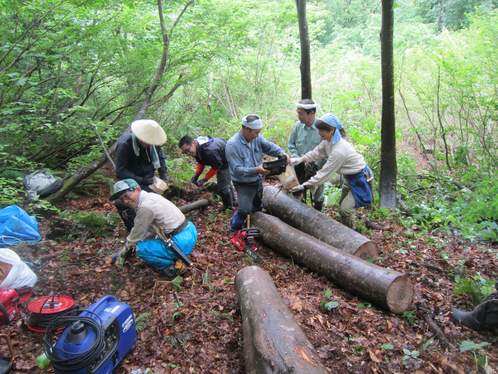 心配していた雨も上がり、予定どおりナメコの駒打ち作業をおこないました。しみず活性委員会の他エコプラスから大前、高野さん。スタッフの桑原、水村君ほか市役所、農協、高校生そしてわざわざ東京からも有田さんが駆けつけてくれました。うるさいくらいエゾハルゼミの鳴く中、森林浴をしながらの作業最高でした。皆様ご苦労様でした。