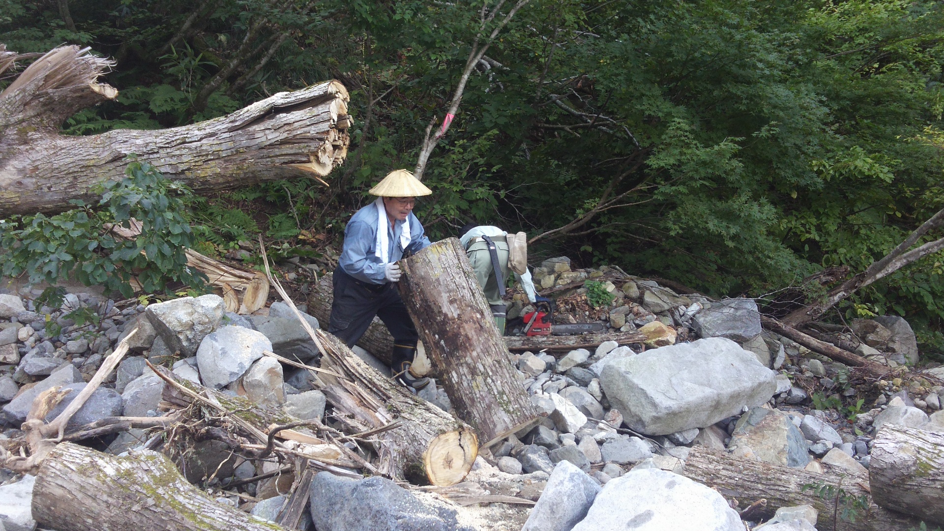 今回は大雨で荒れた道路、障害物撤去を兼ねて作業を行いました。