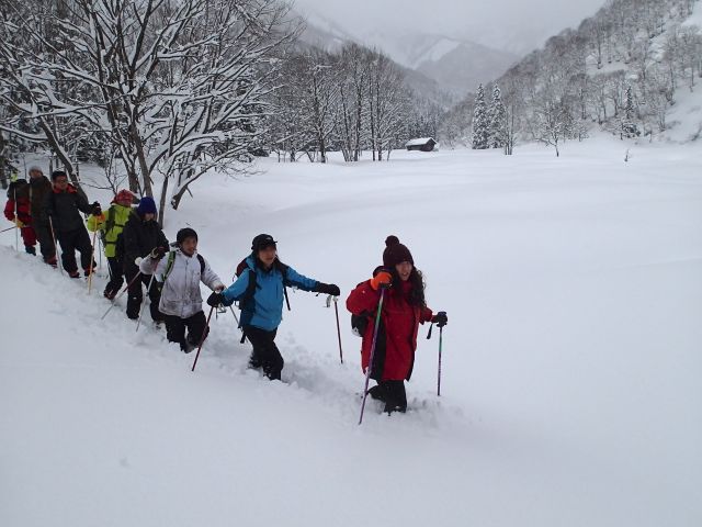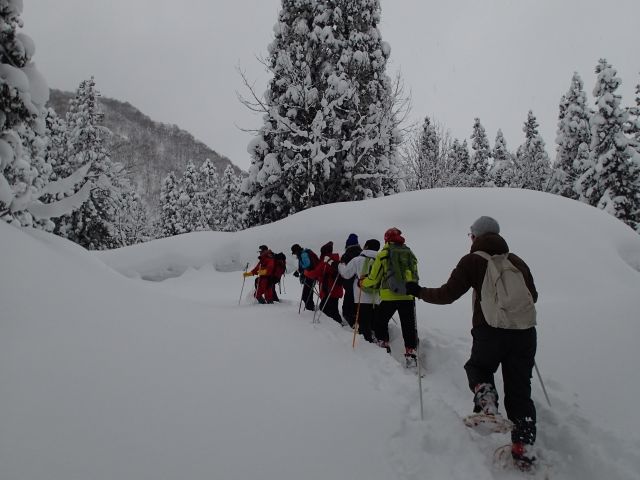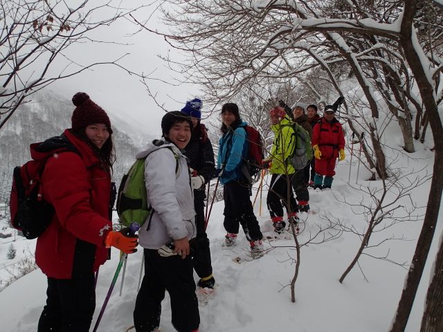 2014年2月はじめ、早稲田大学の学生さんたちが集落実習で清水にやってきました。雪の中、集落の南西側にある「前山」に登りました。